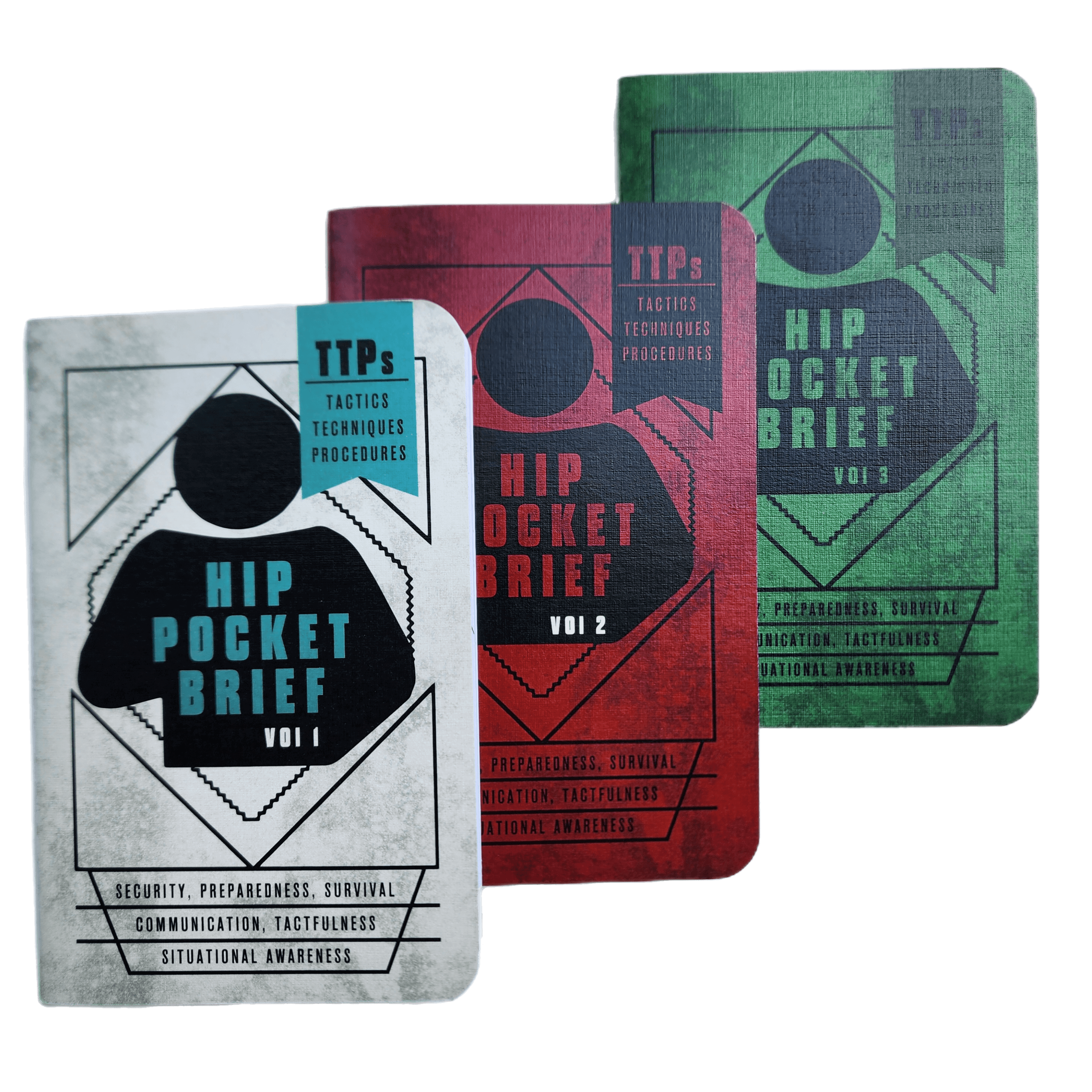 The Hip Pocket Brief Vol 2 features 40 short training sessions meant to be read and understood in less than a minute while providing enduring actionable Tactics, Techniques, and Procedures (TTPs) on topics that increase your knowledge to evade threats, prepare for disaster, react to emergencies, detect covert behaviors, survive a crisis, and collect intel.