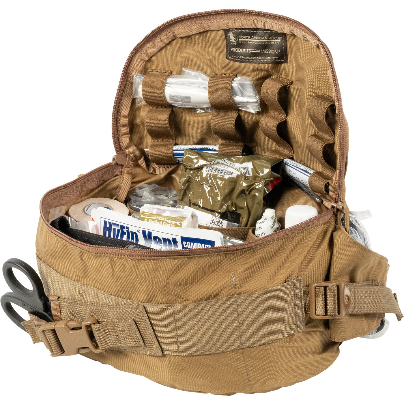 The bag’s versatile carry options—including over-the-shoulder bandolier, waist-mounted, or hand-carried configurations—make it adaptable to any mission. Built from rugged materials, the kit ensures durability in demanding environments while offering immediate readiness when every moment matters.