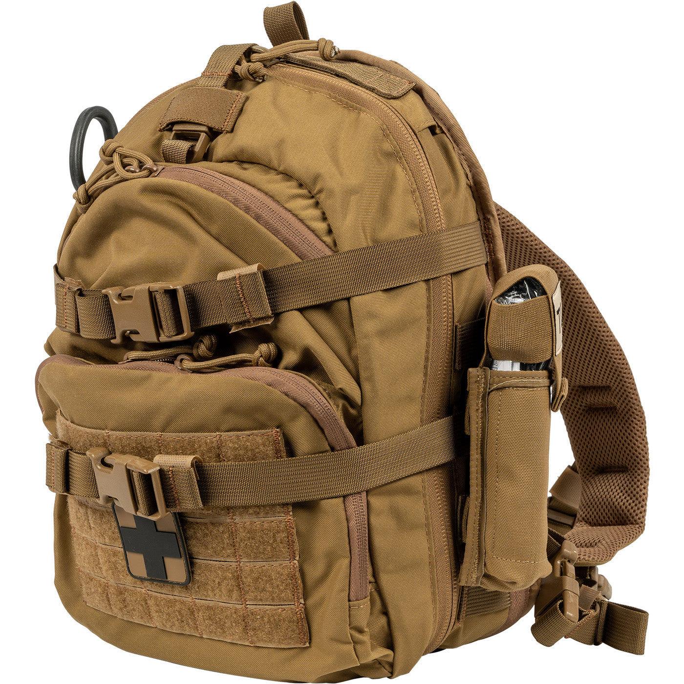 Constructed from durable tactical nylon, the Mini Medic Kit features two external storage pockets, dual tourniquet holders, and a drop-down rear pouch perfect for compact breaching tools or hydration bladders. Its expansion zipper allows increased capacity when needed, while MOLLE-compatible panels on all sides provide full customization for your operational needs.