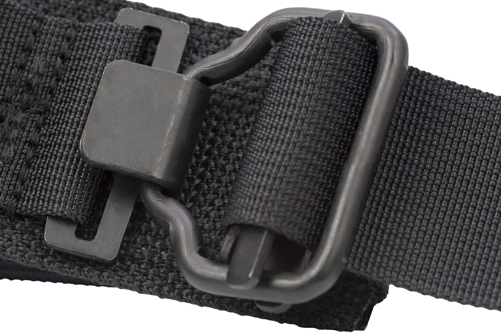 • Rugged Buckle – Lightweight composite for quick, single-motion slack removal